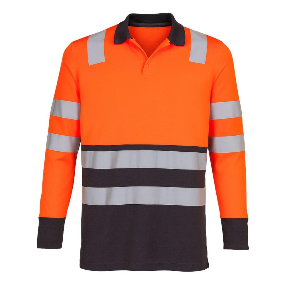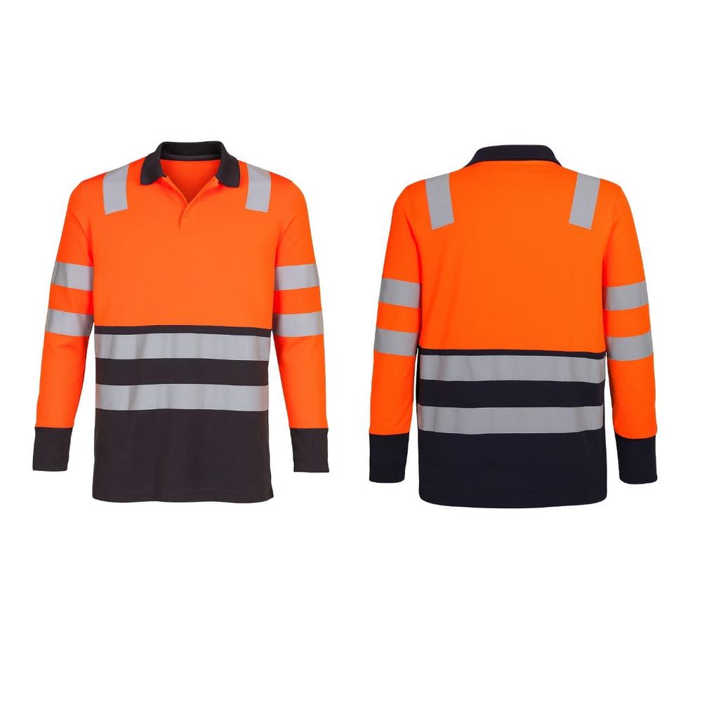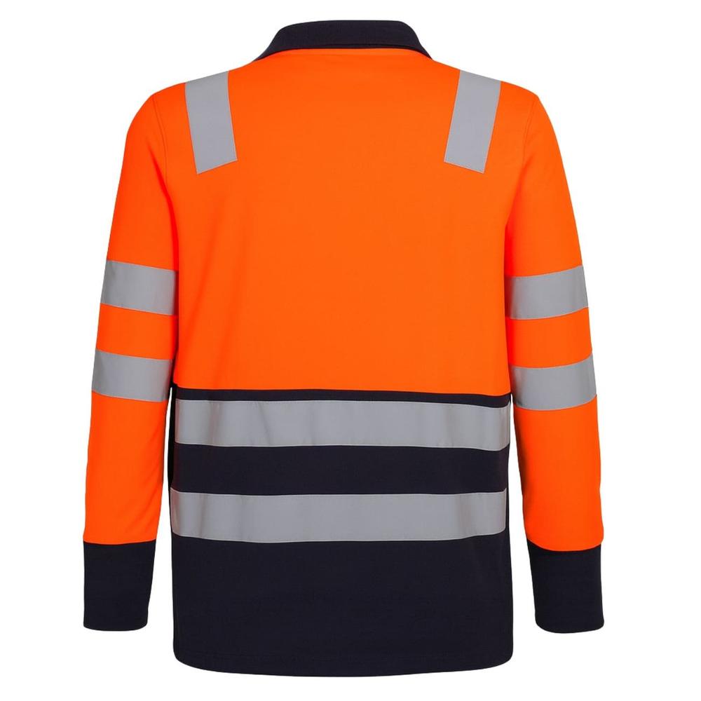 - Bandas grises reflectantes en brazos, pecho, espalda y cintura, diseñadas para aumentar la visibilidad en condiciones de poca luz.